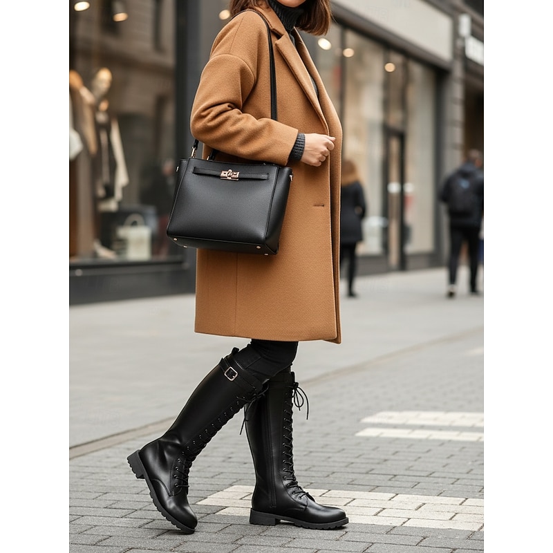 Highlights - High-quality PU upper materials - Comfortable and durable synthetic leather lining - Stylish buckle embellishment - Trendy chunky heel design - Classic round toe shape - Reliable rubber outsole - Stay ahead of the trends with these combat boots in 2025