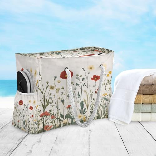 HOT ! Wildflowers(1) Beach Bag & Travel Tote Bag Large Sandproof with Zipper Closure, Wet Pouch for Swim Gym Travel
