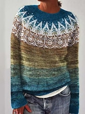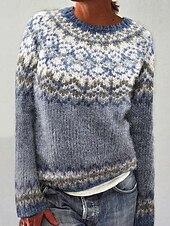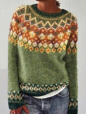 This Women's Fair Isle Sweater Pullover Elegant Vintage Streetwear Geometric Ribbed Crew Neck Floral Long Sleeve Regular Tops Knit School Outdoor Home Blue Green Spring Fall combines elegant design with practical functionality. Every detail has been carefully considered to ensure you get the finest possible experience. The top-grade construction means this product will serve you well for years to come.