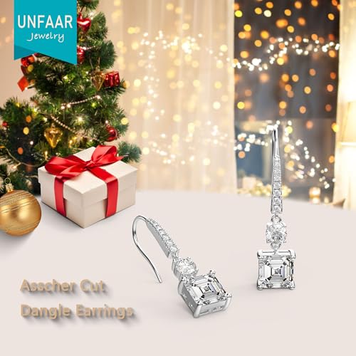 • BRILLANT SIMULATED DIAMOND: These stunning square diamond dangle earrings for women, Made of s925 sterling silver are nickel-no-cost, and lead-free hypoallergenic earrings, the supreme choice for sensitive ears, Asscher cut cz dangle earrings for women