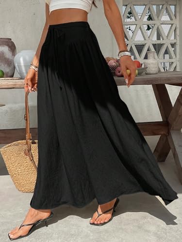 Fabric type: 100% Woven FabricCare instructions: Machine WashOrigin: ImportedClosure type: BuckleThis womens skirt are suitable for partysummer beach,vacation,dates,party,casual wear, Home, Business,Shopping,club nights,and the office,making you a exquisite scenery among the crowd.Material:Woven FabricFrill, Knot / Unlined / Plain / High Waist / Woven Fabric / Non-Stretch / Casual / Machine wash or professional dry clean / Long / FlaredModel is Wearing:S, Height:172cm/67.7inch ,Bust:86cm/33.9inch ,Waist:60cm/23.6inch ,Hip:89cm/35inch