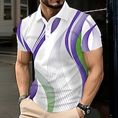 More information about Men's Geometic Line Polo Short Sleeve Polo Shirts Lapel Business Casual Business Athleisure 3D Print Buttons Summer Blue Purple Gold