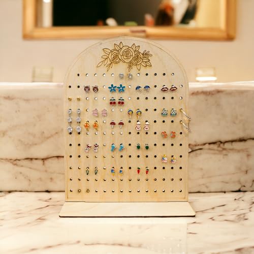 2OWLS Earring Holder Girls Rose Wood Jewelry Organizer for Girls Vanity Women. Pegboard Jewelry Rack Studs Earring Stand Organizer Boho floral Earring Tower Organizer for Girls. Boho 7