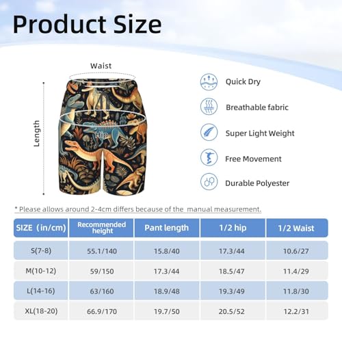 Boys Swim Trunks Beach Shorts Summer Surf Kids Youth Bathing Suits, Dino Dinosaur Art 4