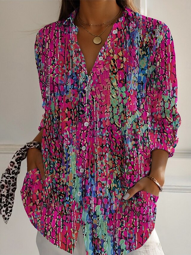 More information about Women's Shirt Floral Active Daily Stylish Long Sleeve Shirt Collar Regular Tops Daily Holiday Buttons Print Red Blue Fuchsia Green Spring Fall