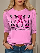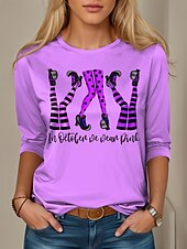 More information about Halloween Women's T shirt Witch Graphic Letter Vintage Fashion Stylish Long Sleeve Crew Neck Round Neck Regular Tops Daily Weekend Print Pink Blue Purple Green Spring Fall Winter