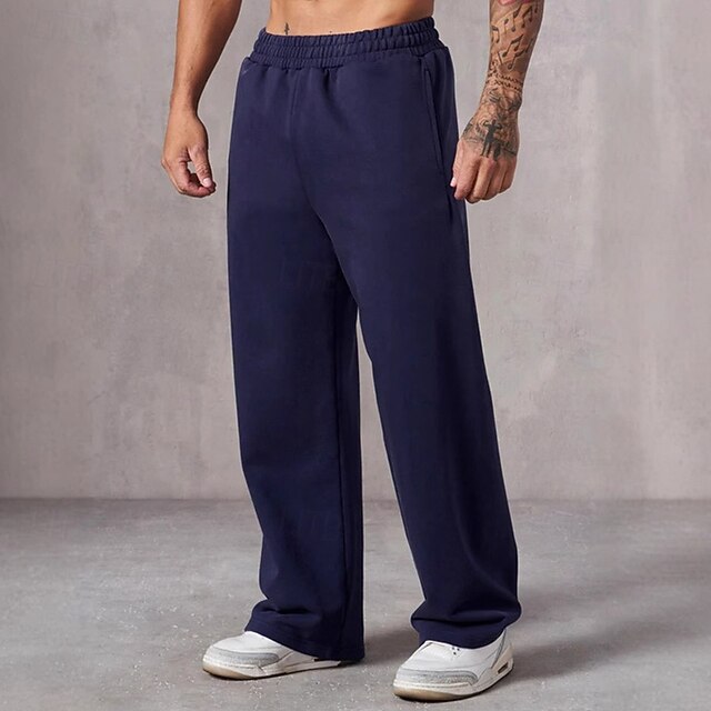 HOT ! Men's Sweatpants Trousers Straight Leg Sweatpants Pocket Elastic Waist Plain Comfort Sports Outdoor Daily Fashion Casual Black Navy Blue Micro-elastic