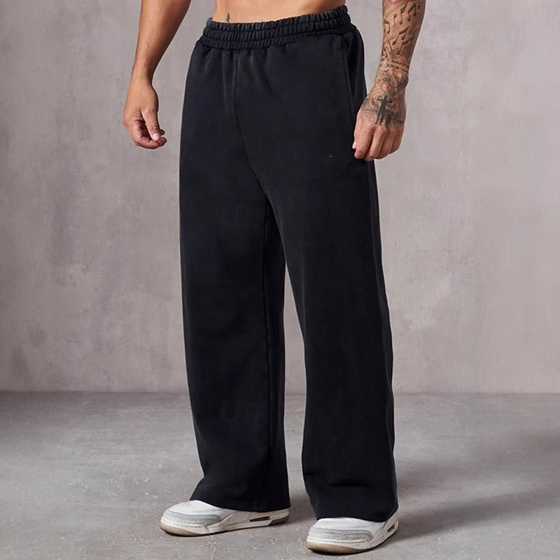 More information about Men's Sweatpants Trousers Straight Leg Sweatpants Pocket Elastic Waist Plain Comfort Sports Outdoor Daily Fashion Casual Black Navy Blue Micro-elastic