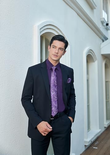 Men's Solid Long Sleeve Dress Shirt with Matching Tie and Handkerchief Set timeless Button Down Formal Business Shirts
