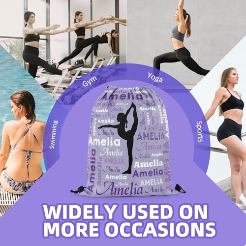 • Personalized Gymnastics Drawstring Backpack with Name: Click "Customize" and enter the name to customize Unique keepsake, this Gymnastics Drawstring Bag makes a great gift, whether for a friend,daughter, girlfriend, or teammate.