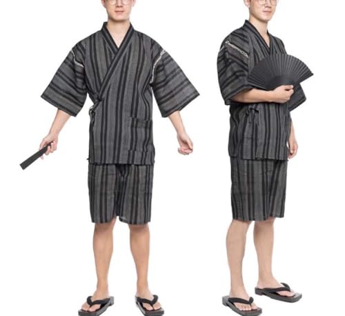 More information about ZEALMAX Kimono Japanese Jinbei Shirt Pant Cotton Linen Loungewear Spa Bathrobe Casual Clothing for Home Vacation, Black with White Line