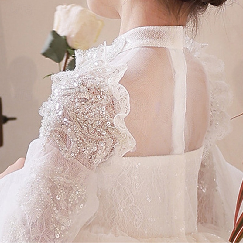 More information about Flower Girl Dress Kid's Girls' Princess Dress Performance Wedding Party Elegant Beautiful Mesh Solid Color Long Sleeve Standing Collar White 4 years+