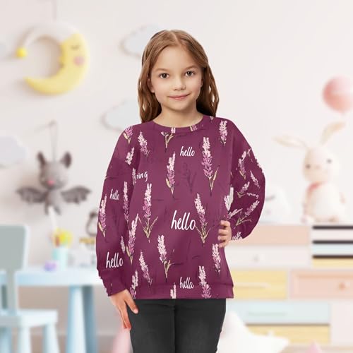 JUNZAN Aesthetic Lavender Burgundy Big Girls Hooded Sweatshirt Crewneck Outerwear for Kids Sports 4T 5