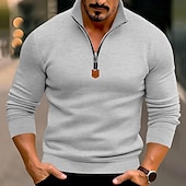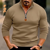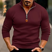More information about Men's Quarter Zip Polo Golf Shirt Daily Holiday Quarter Zip Long Sleeve Fashion Modern Plain Spring & Fall Regular Fit Black White Wine Red Camel Light Grey Quarter Zip Polo