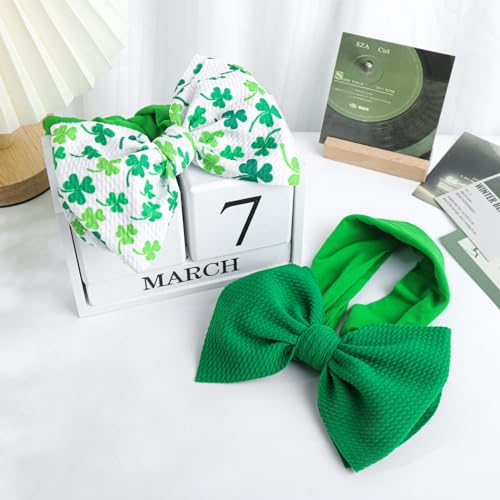 Color: St. Patrick, GreenAge Range (Description): BabyMaterial: PlasticFabric Type: PolyesterNumber of Items: 2Add Festival Atmosphere: The timeless shamrock pattern and festival color of the baby headband, which echoes St.Patrick Day, adds color to most occasions and would be a great gift for a child over the St.Patrick holiday.High-Quality Material: The 6 St.Patrick baby bow is made of double-layer print fabric, It is soft and light, top-grade, and not easy to fade or break. Nylon headband, soft and elastic, suitable for different head circumferences, friendly to baby skin.One Size fits all: Baby hairband with a premium super soft elastic Nylon band. These newborn baby headbands are one-size-fits-all (suitable for newborns and children).Contains 2 Baby Headbands: A set of 2 large bow headbands for toddlers. All baby hair accessories are handmade with love. Every cute baby bow and children's headband is perfect for St.Patrick and daily.Applicable Occasions: Suitable for St.Patrick Day, photo props, celebrations, summer, holidays, Independence Day, everyday wear, or other special occasions.