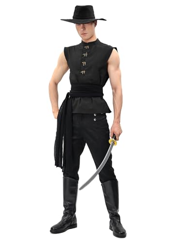 Fabric type: 100% LinenCare instructions: Hand Wash OnlyOrigin: ImportedClosure type: Pull On【Package】:Men's pirate shirt *1.【US Size】:5 sizes available, please check our size chart below carefully before ordering.(body measurements):Men X-Small Chest: 33-34, Waist: 28-29; Men Small Chest: 34.6-36.2, Waist: 28.7-30.3; Men Medium Chest: 37.8-40.2, Waist: 32.3-34.3; Men Large Chest: 41.7-44.1, Waist: 36.2-38.2; Men X-Large Chest: 45.7-48, Waist: 40.2-42.1; Men XX-Large Chest: 49.6-52, Waist: 44.1-46.1;【Design】:This sleeveless vintage vest for men is made of cotton and linen, which is very breathable, pleasant and lightweight to keep you cool at all times, 5 iconic colors for choice. And the retro buttons on the neck make it more decent as a Renaissance shirt.【Occasions】:Perfect for men's viking pirate cosplay, Scottish Warrior costume and daily wear etc. Also good choice as an gift for Birthday, costume party, Halloween.【Quality Service】: If you have any questions about our products please do not hesitate to tell us in time, I will be happy to solve it for you.