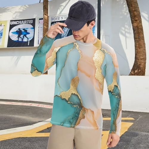 Marble Turquoise Blush Men's Rash Guard Shirts Loose Crew Neck Elasticity Mens Sun Protection Long Sleeve Summer 2