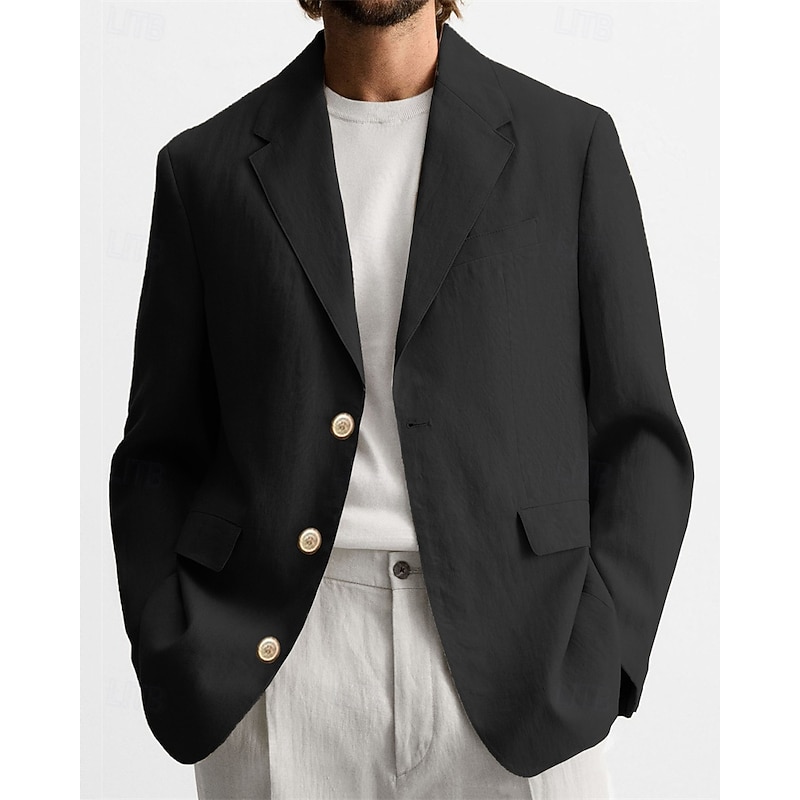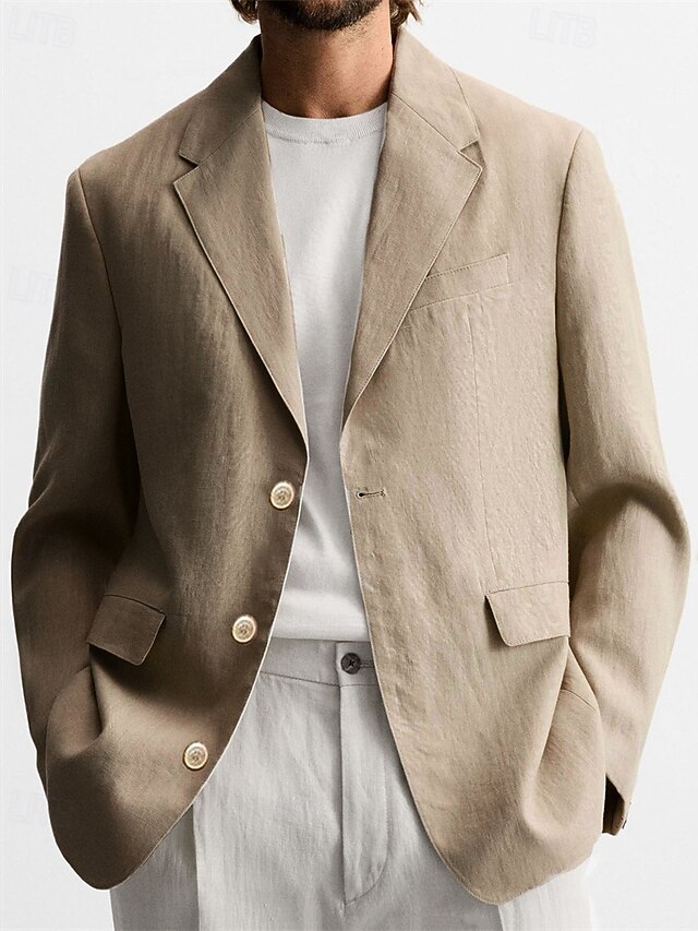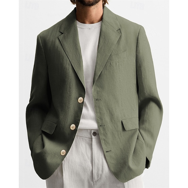 More information about Men's Graduation Blazer Business Cocktail Party Wedding Party Fashion Casual Spring Autumn / Fall Linen Solid Color Pocket Buttons Comfortable Single Breasted Blazer Black Brown khaki Army Green