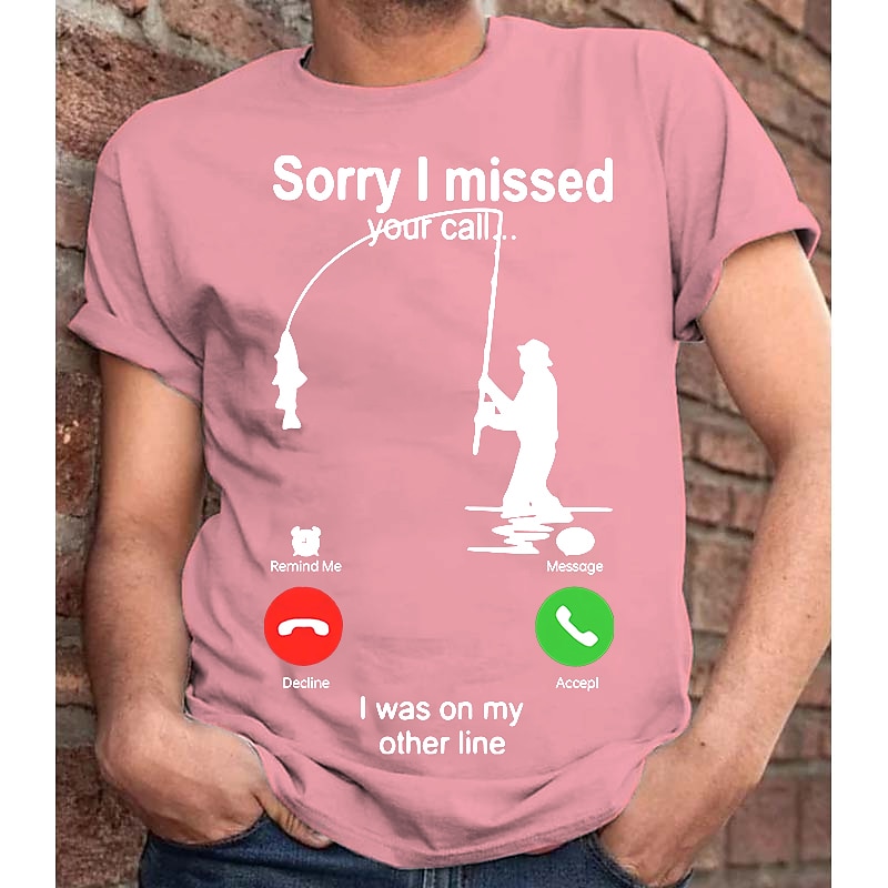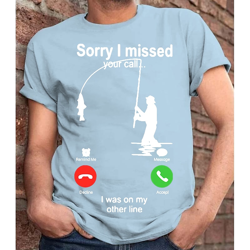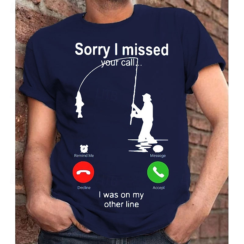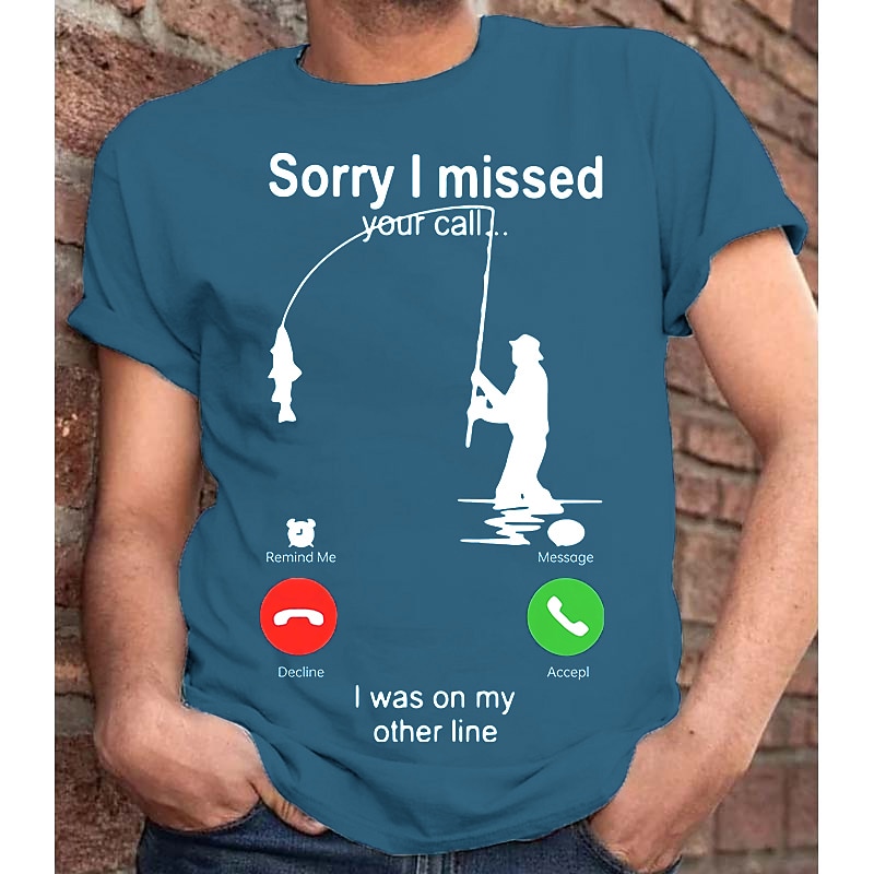 Men's T-Shirt, Funny Fishing Graphic Tee, "Sorry I Missed Your Call... I Was On My Other Line" Short Sleeve Fisherman Humor Gift 13