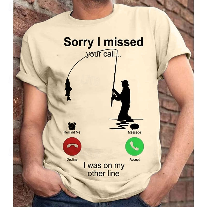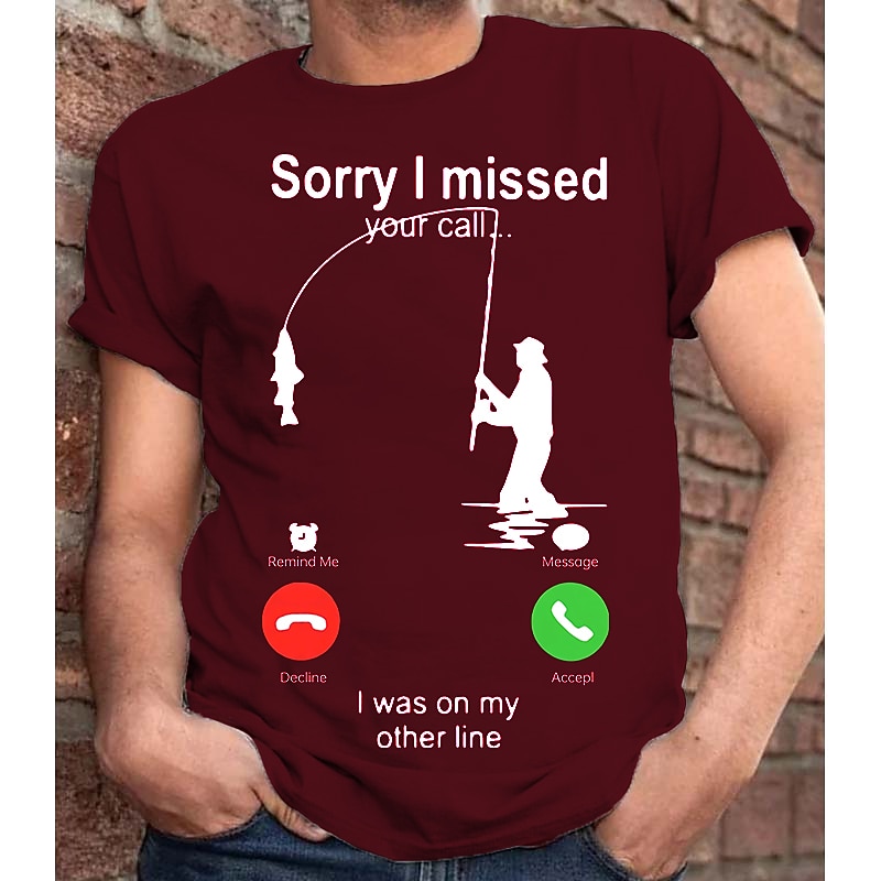Men's T-Shirt, Funny Fishing Graphic Tee, "Sorry I Missed Your Call... I Was On My Other Line" Short Sleeve Fisherman Humor Gift 9
