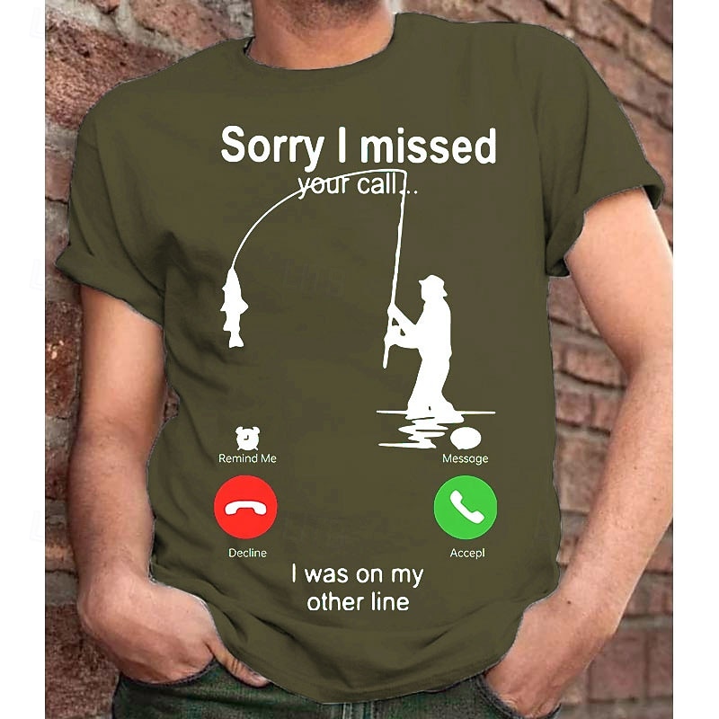 Men's T-Shirt, Funny Fishing Graphic Tee, "Sorry I Missed Your Call... I Was On My Other Line" Short Sleeve Fisherman Humor Gift 26