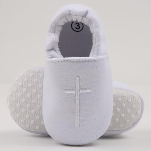 Methee White Baby Baptism Christening Shoes Embroidered Cross Easter Shoes Infant First Walking Shoes Newborn Crib Shoes Toddler Communion Shoes 3