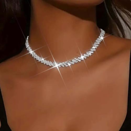 Fashey Rhinestone Choker Necklaces Sparkly Crystal Necklace Dainty Necklaces Jewelry for Women 3