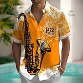 More information about Men's Boardmasters Musical Instrument Jazz Shirt Summer Shirt Button Up Shirt Short Sleeve Vintage Retro Outdoor Holiday Summer Spring Turndown 3D Print Collared Shirts Front One Pocket Orange