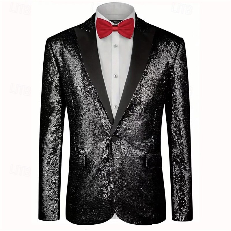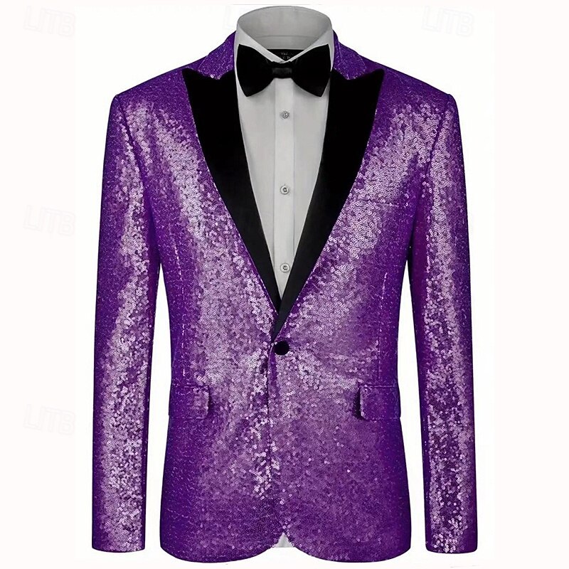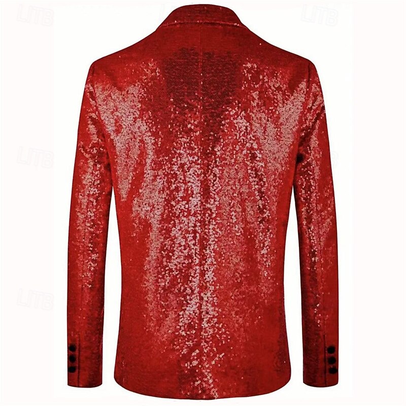 More information about Men's Blazer Stage Cocktail Party Wedding Party Fashion Casual Spring & Fall Polyester Plaid Stripes Pocket Buttons Comfortable Single Breasted Blazer Silver Black Red Blue