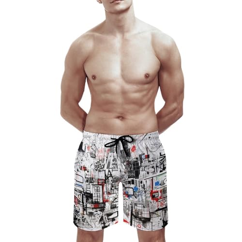 Funny Graffiti Style Swim Trunks for Men Summer Swimsuit Breathable Mesh Lining with Pocket 6