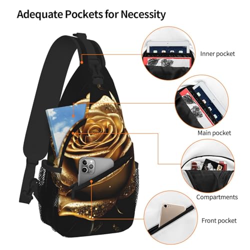 Gold Rose Print Cross Chest Bag Diagonally - High-Capacity For Short Trips, Work, And Daily Use 5
