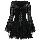 More information about Gothic Mini Dress Bell Sleeve Witch Lace Velvet Corset Floral Fancy Dress Women's Fantasy Halloween Carnival Performance Party Adults Dress