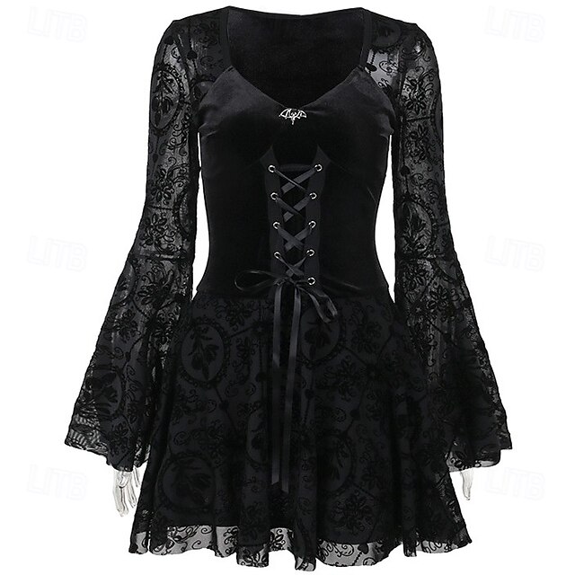 $33.99 - Gothic Mini Dress Bell Sleeve Witch Lace Velvet Corset Floral Fancy Dress Women's Fantasy Halloween Carnival Performance Party Adults Dress 2025. Shop for cheap Dresses online? Buy at lightinthebox.com on sale today!