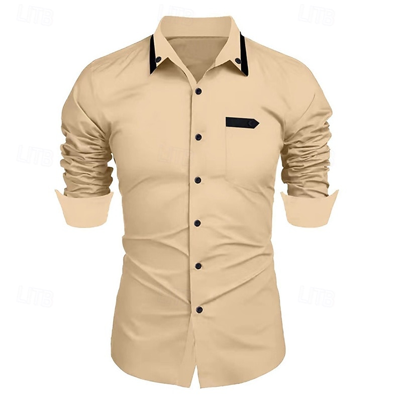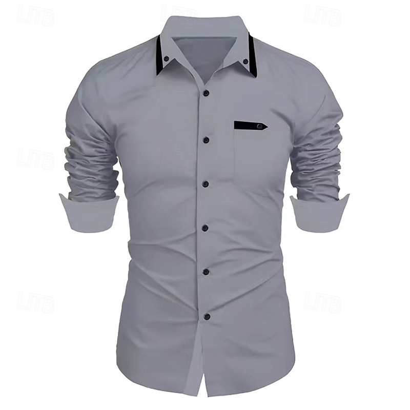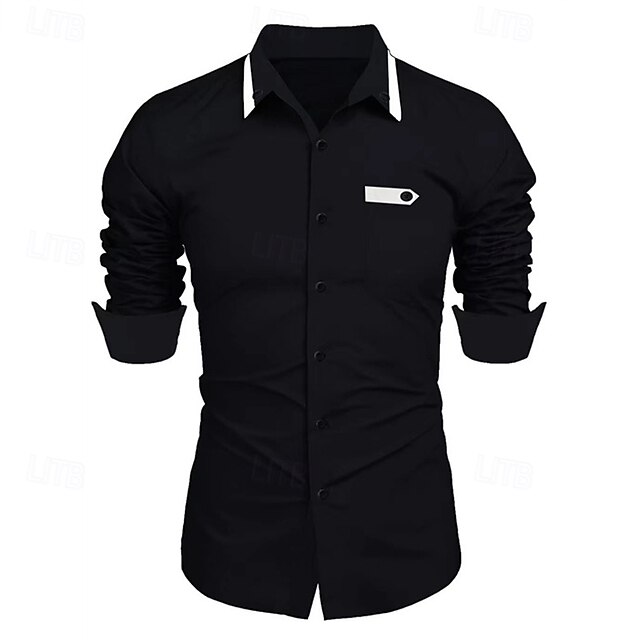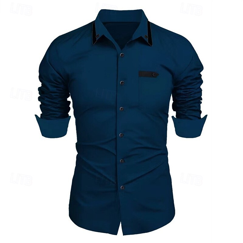 More information about Men's Shirt Dress Shirt Button Up Shirt Plain Wedding Party Black White Navy Blue Sky Blue Long Sleeve Lapel Spring & Fall Clothing Apparel