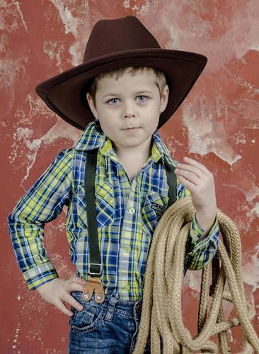 Jastore Kids Western Cowboy Hat for Girl Boy Wide Brim Beach Cowgirl Hat with Belt Buckle Cattleman Cowboys Hats