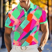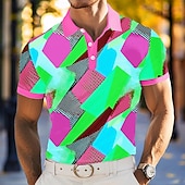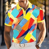 More information about Men's Polo Vacation Street Turndown Short Sleeve Vacation Geometric Color Block Buttons Summer Grey Yellow Green Purple Polo