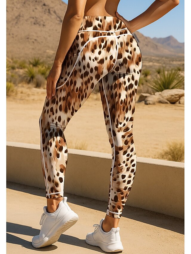 Women's pilates leggings fitness pants Gym Leggings Pockets Stamp Duty Side Pockets Pilates Gym Gym Workout Pants Tights Leggings Graphic Leopard Print dark grey+blue+black Blue Purple Sports 6