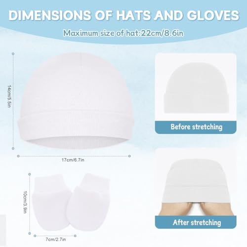 • 【NEWBORN ESSENTIALS MUST HAVES SETS】- Each baby mitt and hat set is stretchy for a better fit against your baby's skin. The elastic gloves are fixed on the baby's little hands, which can effectively prevent the baby from scratching himself.