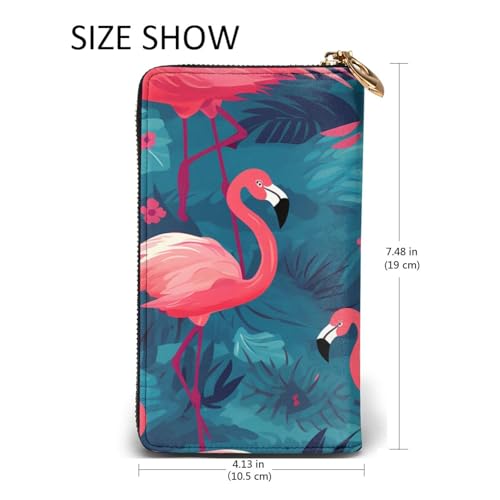 HOT ! Pink Flamingo Prints Leather Long Clutch Wallet for Fashionable Girls and Women - Durable, Stylish, and Functional, Black, One Size