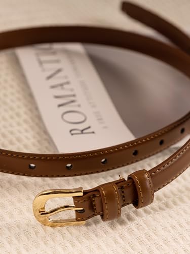 Women's Skinny Leather Belt for Jeans Dresses Pants Ladies Thin Soft Waistband with Gold Buckle Black Brown Belt 7
