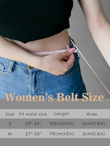 • Minimalist:Boasting a clean, stylish silhouette, this thin belt transitions flawlessly from casual to formal settings. Its understated design elevates seasonal wardrobes, delivering refined contemporary flair to any outfit. Available in two sizes: S (25''–35'') and M (27''–38''), designed to seamlessly adapt to most pants or dresses