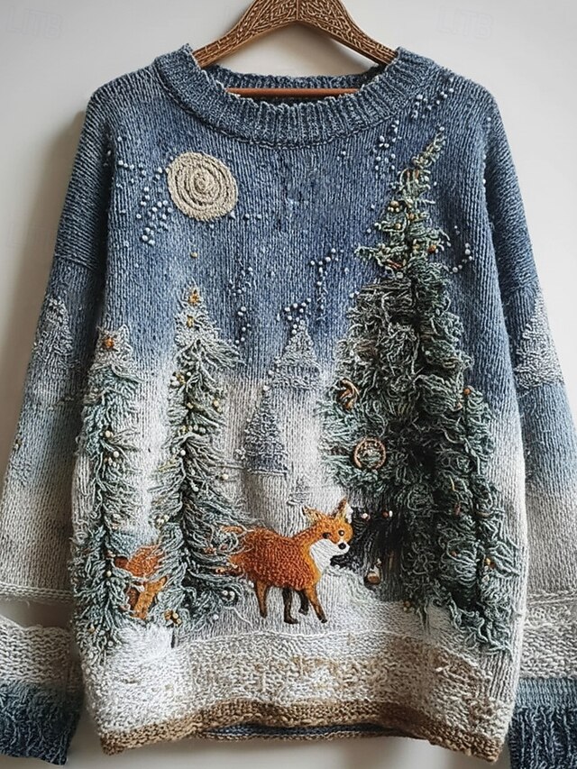 More information about Women's Sweater Vintage Sweater Animal Pullover Daily Casual Graphic Animal Ribbed Crew Neck Knitted Print Long Sleeve Regular Tops Knit Outdoor Weekend Blue Fall Winter