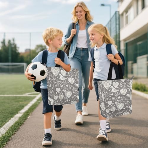 Decorative Kids Cute Tote Bags for Kids Adults, Grey and White Valentine Love Bird Waterproof Tote Bag Resuable Grocery Bag with Zipper for School Shopping Beach Rainbow para libros de lectura 4