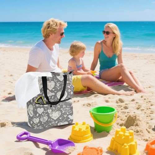 HOT ! Decorative Kids Cute Tote Bags for Kids Adults, Grey and White Valentine Love Bird Waterproof Tote Bag Resuable Grocery Bag with Zipper for School Shopping Beach Rainbow para libros de lectura
