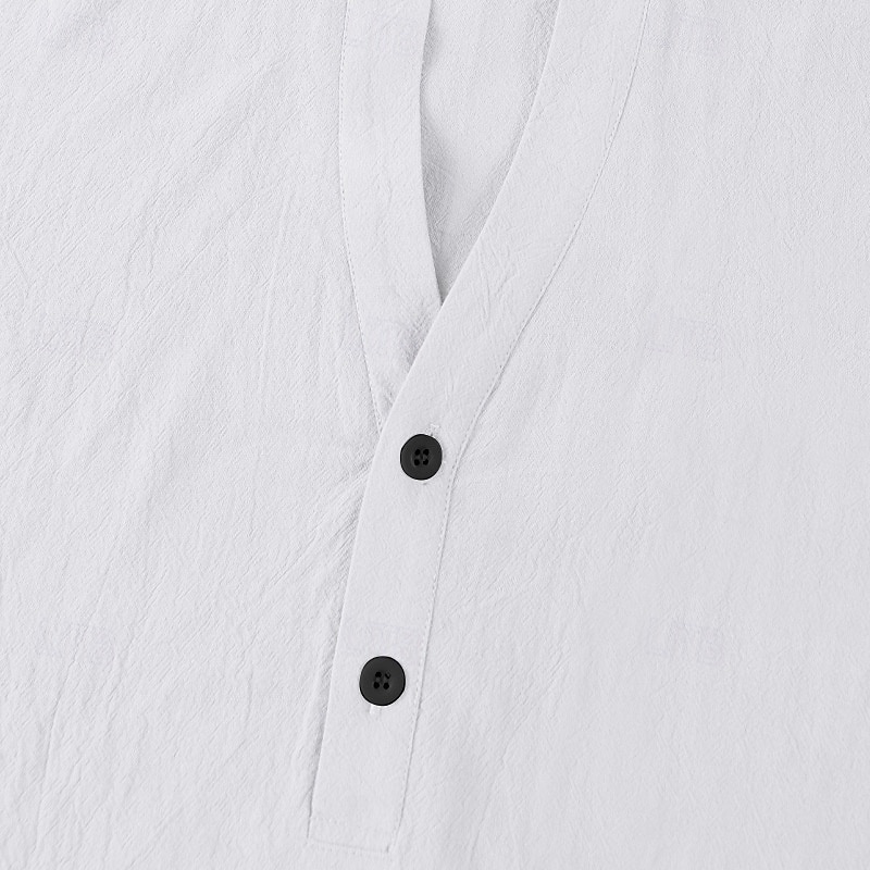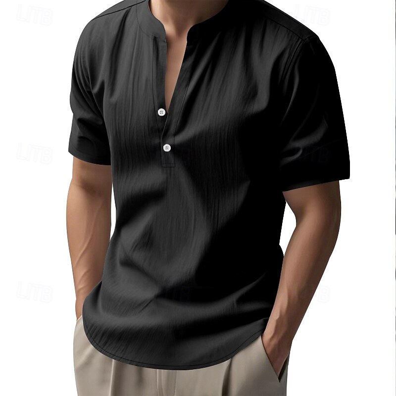 More information about Men's Shirt Linen Shirt Popover Shirt Casual Shirt Cotton Shirt Plain Vacation Street Black White Khaki Light Blue Short Sleeve Band Collar Summer Clothing Apparel