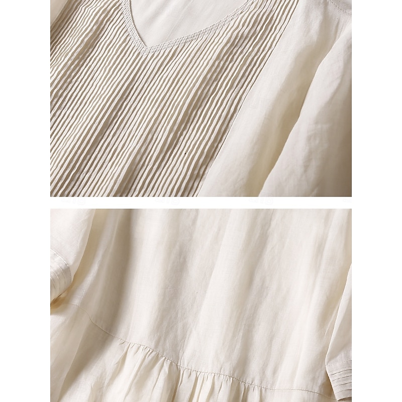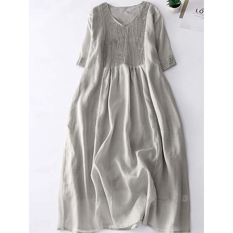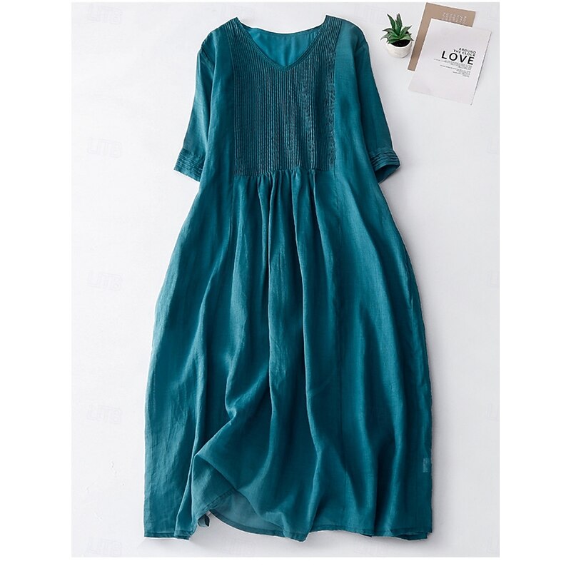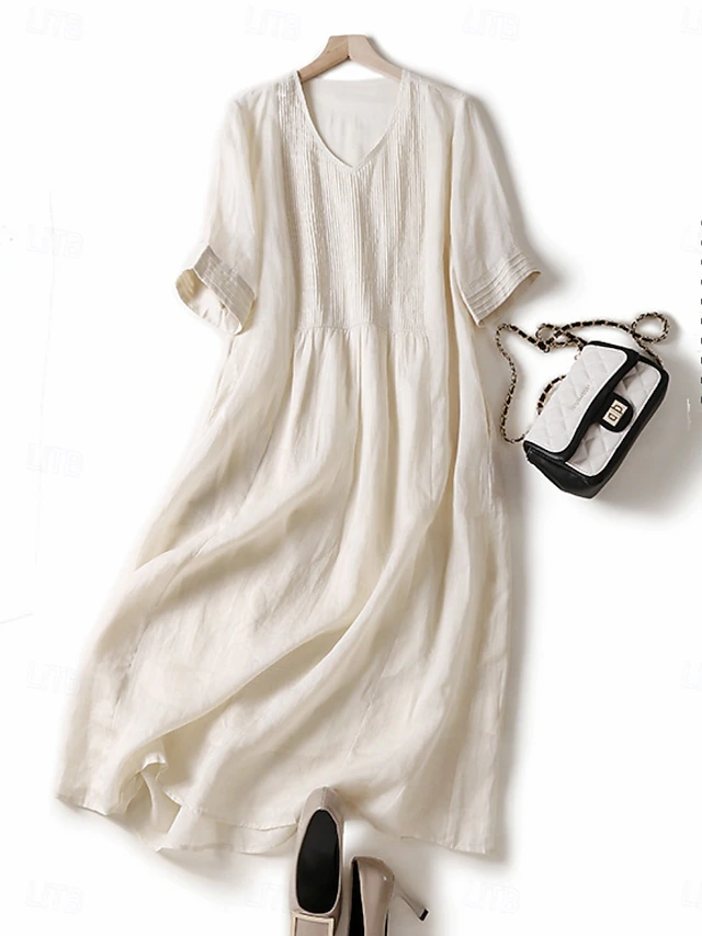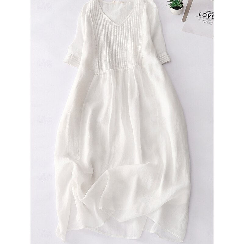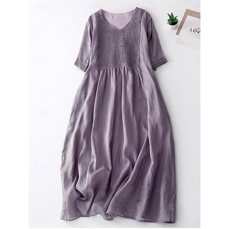 More information about Women's Cotton Linen Midi Dress A Line Dress Summer Dress Casual Daily Regular Fit Plain Half Sleeve Crew Neck White Blue Purple Green Summer