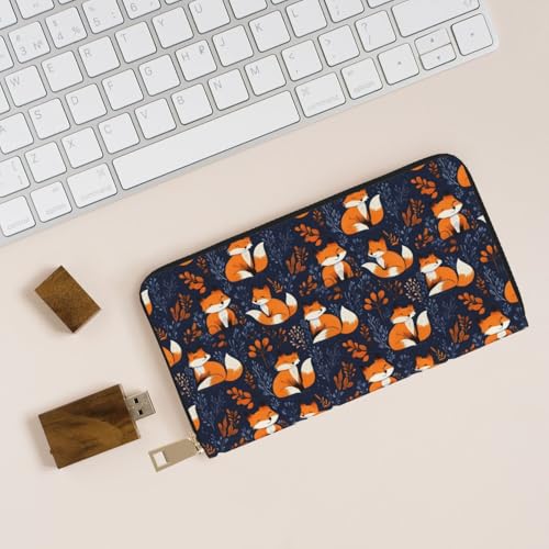 Cute Foxes Print Wallet Women Men, Long PU Leather Wallets for Women, Cute Womens Travel Wallet Purse Pouch with Zipper Pocket 1