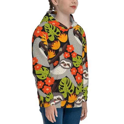 Sloth on the Branch Kid Hoodies Boys Sweatshirts Girls Pullover with Pocket