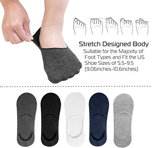 iMounTEK Unisex No Show Invisible Socks. Non-Slip Grip, Low Cut Casual Cotton Breathable Boat Socks 5 Pairs 6