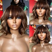 $235.69 - Human Hair 5x5 Closure 13x4 Lace Front Wig Short Bob With Bangs Brazilian Hair Wavy Brown Multi-color Wig 130% 150% Density Highlighted / Balayage Hair Glueless Pre-Plucked For Women Short Human Hair 2025. Shop for cheap Human Hair Lace Front Wigs online? Buy at lightinthebox.com on sale today!